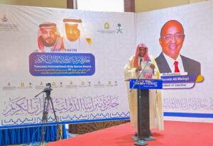 من جانبه، رفع مفتي زنجبار الشيخ صالح كعبي خالص الشكر والتقدير لخادم الحرمين الشريفين الملك سلمان بن عبدالعزيز آل سعود، وسمو ولي عهده الأمين رئيس مجلس الوزراء صاحب السمو الملكي الأمير محمد بن سلمان بن عبدالعزيز – حفظهما الله – على ما توليه المملكة العربية السعودية من عناية كبيرة بكتاب الله الكريم ودعمها المتواصل للمسابقات القرآنية في مختلف دول العالم.