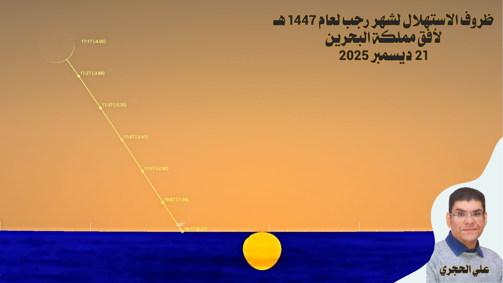 وسهل الحجري أن رؤية هلال شهر رجب الحرام ستكون ممكنة بالعين المجردة مساء يوم الأحد الموافق 21 ديسمبر، أي بعد يوم واحد من اقترانه بالشمس، وأوضح أن القمر يتعافى تدريجياً من ظاهرة “العقد النازل” التي تطرأ قبل وبعد طور المحاق منذ شهر ربيع الأول الماضي، وهي الظاهرة التي أثرت بشكل ملحوظ في ذروتها على تحديد غرة شهر جمادى الآخرة الجاري، حيث اختلفت الآراء الفقهية في تحديد بدايته حتى امتدت الغرة لثلاثة أيام متتالية.
