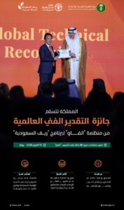المملكة تتسلّم جائزة التقدير الفني العالمية من منظمة “الفاو” لاختيار برنامج “ريف السعودية” كأكبر برنامج تنموي زراعي على مستوى العالم