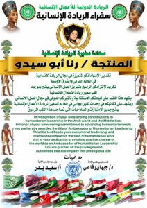 المنتجة رنا أبو سيدو تحصد لقب “سفيرة الريادة الإنسانية” تقديرًا لمسيرتها الملهمة