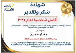 في لفتة تقديرية لمسيرته المميزة وإنجازاته المشرفة، تم تكريم المهندس مختار حجازي، رئيس مجلس إدارة شركة شاركول، كأفضل شخصية لعام 2025، لما قدمه من جهود بارزة ونموذج يحتذى به في النجاح والمثابرة والعمل الجاد.