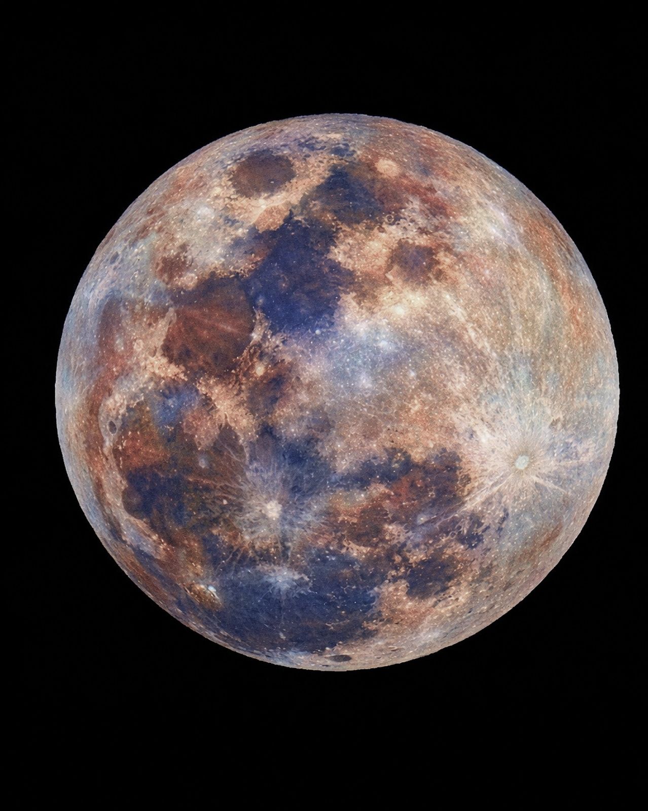 إن ما تراه في هذه الصورة ليس القمر بألوانه الرمادية المعتادة بل هو معالجة فلكية متقدمة تعرف باسم “القمر المعدني” في هذه التقنية يتم تعزيز الفروق اللونية الطفيفة جداً لسطح القمر رقمياً لإبراز التباينات الكيميائية والمعدنية التي تخفيها التربة القمرية.