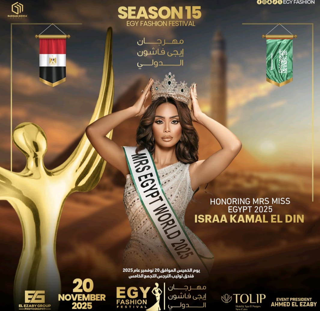 أعلنت ملكة جمال مصر للمتزوجين عام2025 العارضة إسراء كمال الدين عن تكريمها في مهرجان(إيجي فاشون)في موسمه الخامس عشر برئاسة رجل الأعمال أحمد العزبي والذي سيتم تنظيمه في العشرين من شهر نوفمبر القادم بفندق(توليب النرجس) بمنطقة التجمع الخامس بالعاصمة المصرية القاهرة.