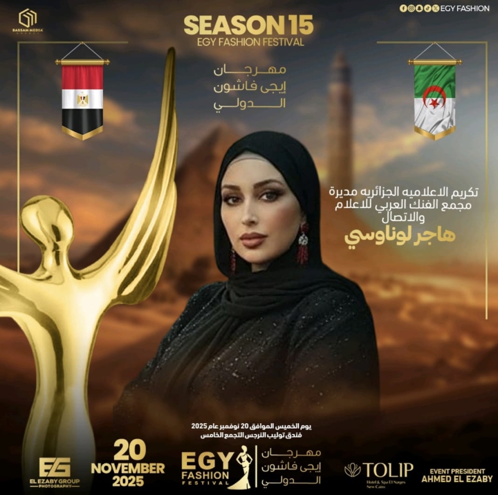 تكريم مميز للإعلامية الجزائرية هاجر لوناوسي في الموسم الخامس عشر لمهرجان إيجي فاشون