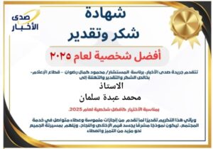 تهنئة للأستاذ محمد عبدة سلمان محمد لحصوله على أفضل شخصية لعام 2025