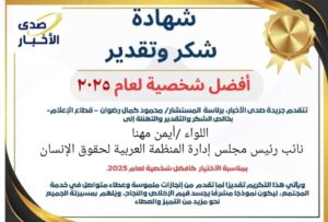 تتقدم الجهات الإعلامية والمجتمعية بخالص التهنئة إلى اللواء أيمن مهنا نائب رئيس مجلس إدارة المنظمة العربية لحقوق الإنسان