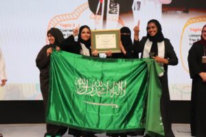 وحقق فريق الطالبات الممثل لجامعة الملك عبدالعزيز جائزة “الوصيف الأول” في المسار الأول الذي تناول موضوع “أثر مستحضرات التجميل وصناعة الملابس على البصمة البيئية والاجتماعية والاقتصادية”، وضم الفريق الطالبة فرح يحيى (اتصال وإعلام – إعلام رقمي)، والطالبة غدي العتيبي (اتصال وإعلام – إنتاج مرئي ومسموع)، والطالبة وسن الزهراني (اتصال وإعلام – علاقات عامة).