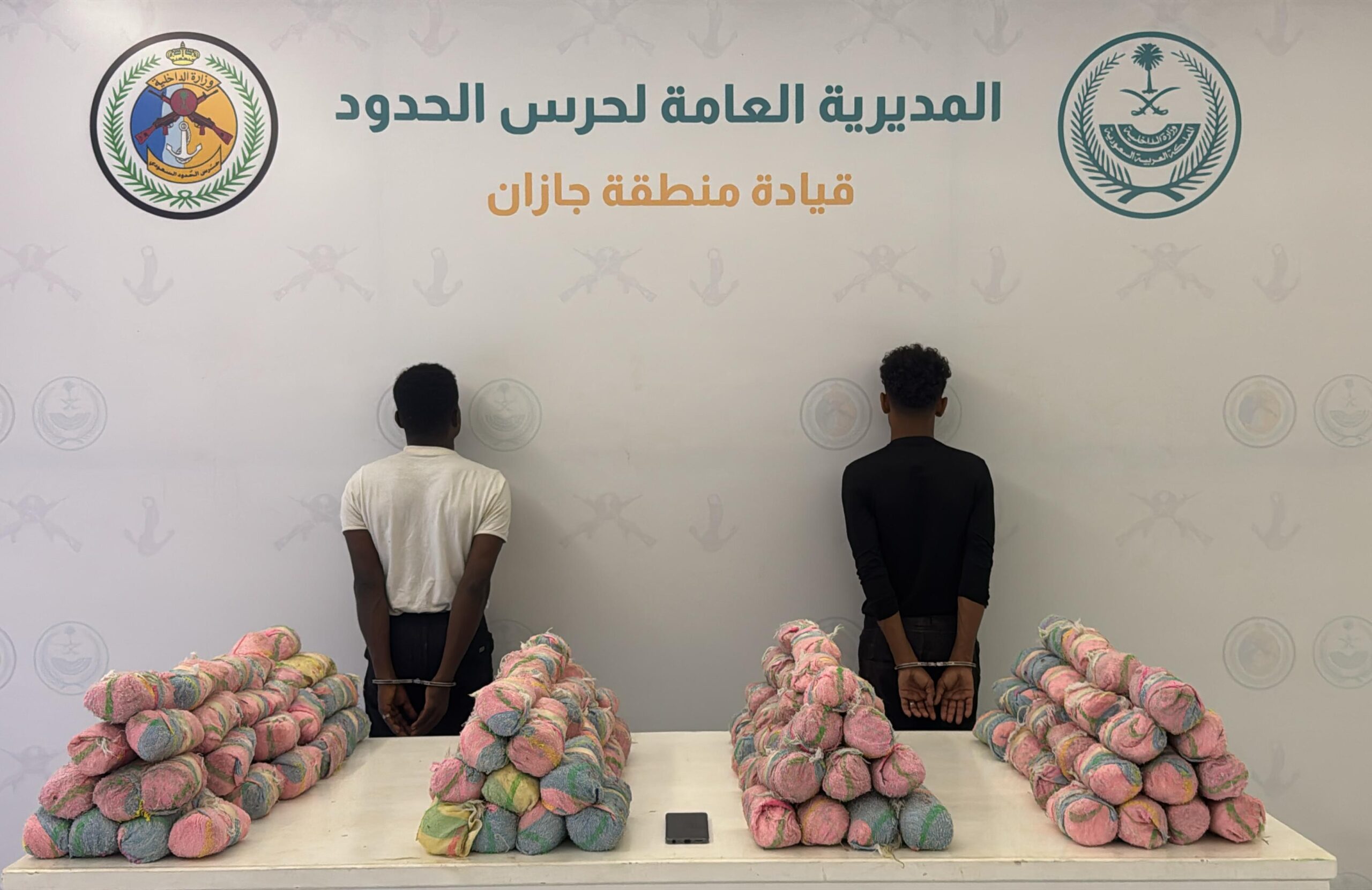 قبضت الدوريات البرية لحرس الحدود في قطاع الحرث بمنطقة جازان على مخالفين لنظام أمن الحدود من الجنسية اليمنية، لتهريبهما (88) كيلوجرامًا من نبات القات المخدر، وجرى استكمال الإجراءات النظامية الأولية بحقهما، وتسليمهما والمضبوطات لجهة الاختصاص.