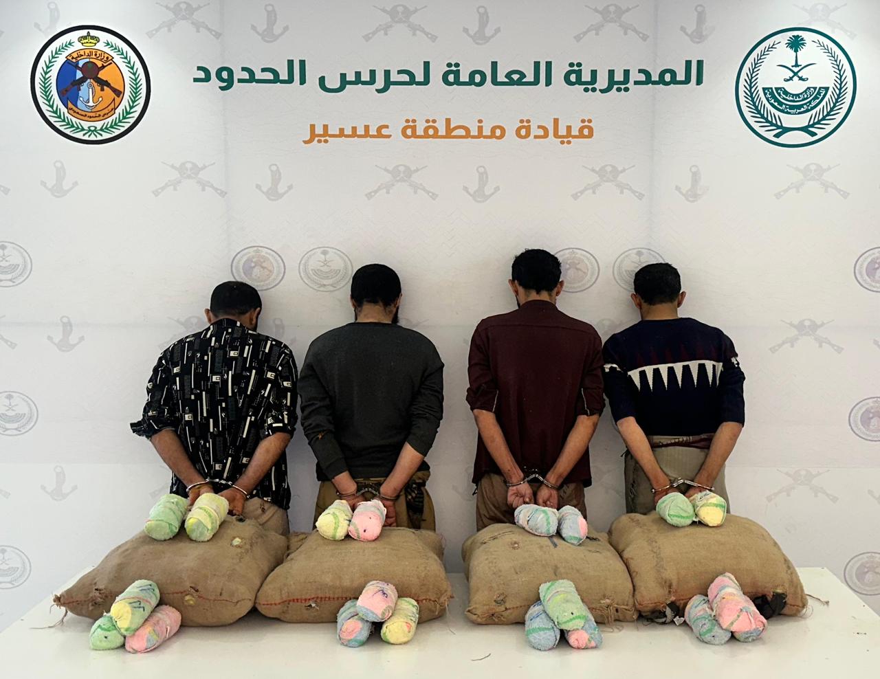 حرس الحدود بمنطقة عسير يقبض على (4) مخالفين لنظام أمن الحدود لتهريبهم (80) كيلوجرامًا من نبات القات المخدر