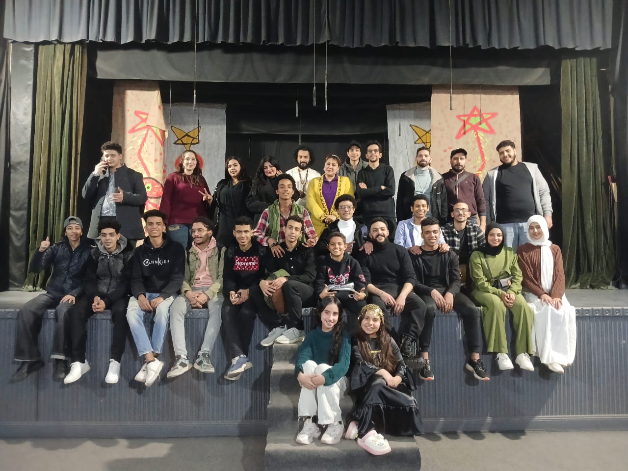 وشهدت خشبة المسرح حضورًا مميزًا لمجموعة من المواهب الصغيرة والشابة، في مقدمتهم الطفلة جوليسيا جرجس، الطفل يوسف جرجس، والطفلة ملك محمد، إلى جانب نورا هشام، حبيبة محمد، محمد حامد، محمد طه، محمد كرم، معاذ إسماعيل، عمرو فوزي، ميشيل إسحق، شهد هاني، موكا إبراهيم، يارا عبد المنعم، عمر رشدي، عمر بركات، شوقي أنور، وعبده دياب، الذين تنوع أداؤهم بين الكوميديا الخفيفة واللحظات الدرامية المكثفة.