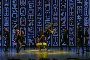 وكان العرض العالمي الأول «كتاب الموتى – الاسم المفقود» هو عنوان الإبهار في ليلة الافتتاح، حيث قدّم المخرج عزت إسماعيل رؤية معاصرة مستلهمة من الموروث المصري القديم، بمشاركة شيرين حجازي في تصميم الرقصات، ليأتي العمل كرحلة بصرية وحركية عبر عوالم الأسطورة، أعادت تقديم «كتاب الموتى» بلغة الجسد، في تجربة فنية جمعت بين العمق التاريخي والتجريب المعاصر.