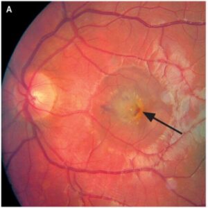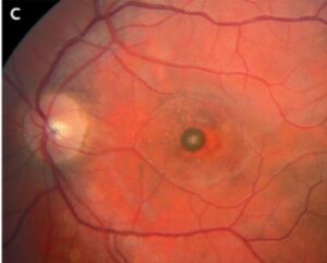 _يعتمد التشخيص على فحص العين وتصوير الشبكية وقياس حدة الإبصار،أما العلاج فيهدف إلى تقليل الالتهاب ومنع المضاعفات،لكنه لا يستطيع إعادة الخلايا التي تلفت،وقد تتحسن بعض الحالات تدريجيًا، لكن في معظم الإصابات تظل الندبة المركزية مؤثرة على الرؤية.