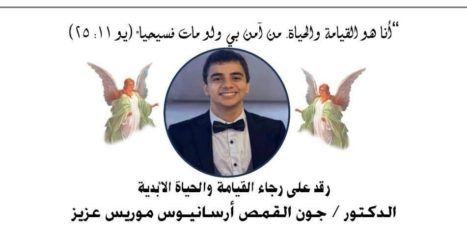 انتقل الي السماء الدكتور جون القمص أرسانيوس موريس عزيز ابن رجل الاعمال هاني شكري عزيز