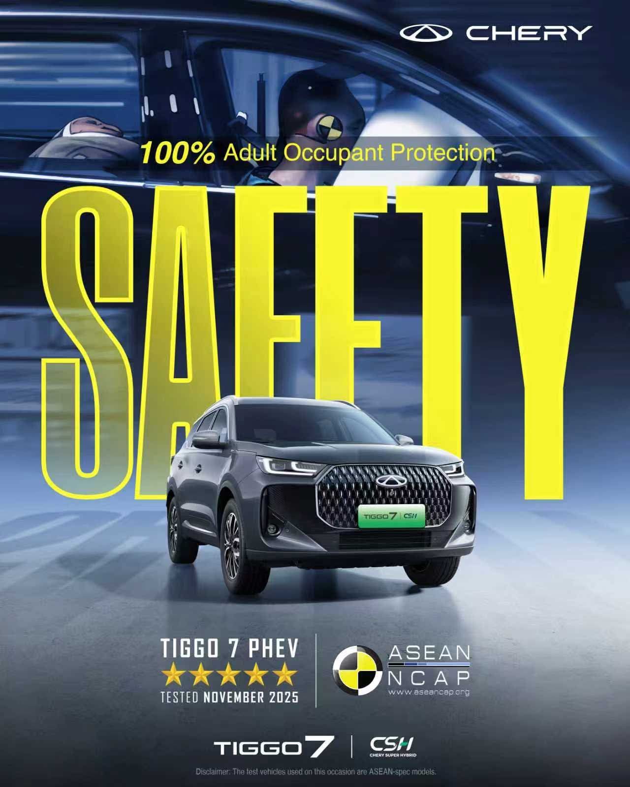 في نهاية عام 2025، حصلت TIGGO7 على تصنيف الخمس نجوم في اختبارات ASEAN NCAP بعد تحقيقها نتيجة إجمالية بلغت 94.68 نقطة، وهي أعلى نتيجة تُسجل في تاريخ البرنامج منذ تأسيسه عام 2011.