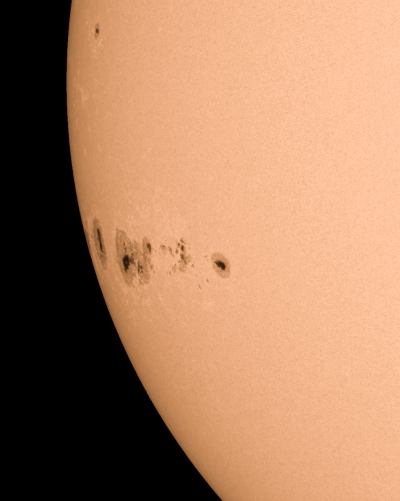 وكان العلماء قد أصدروا تنبيه سابقاً من بقعة شمسية كبيرة إلا أن البيانات الجديدة أظهرت أن حجمها يفوق ذلك بكثير إذ يمتد تجمع البقع الشمسية لمسافة تقارب 130 ألف كيلومتر. وتشير القياسات إلى أن ما لا يقل عن أربع نوى داكنة رئيسية داخل هذا التجمع تزيد كل واحدة منها منفردة على حجم الكرة الأرضية.