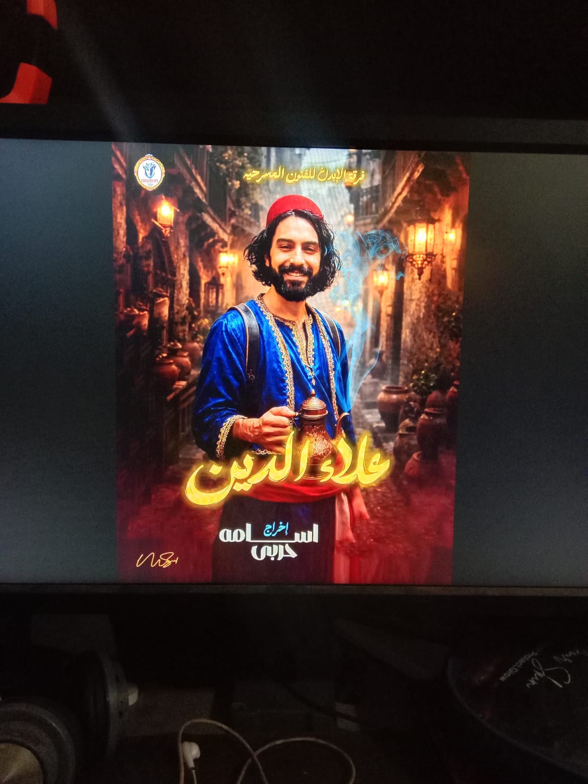 العرض من تأليف رمضان الشهاوي، وإخراج وبطولة أسامه حربي في دور علاء الدين، ويقدم معالجة مسرحية جديدة للصراع الأزلي بين الخير والشر، حيث يواجه علاء الدين قوى الظلام المتمثلة في جعفر والساحرة الشريرة، في حبكة درامية تمزج بين التشويق والاستعراض والغناء.