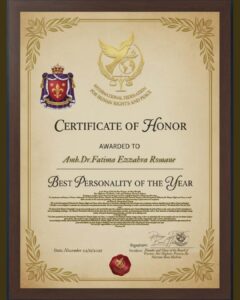فاطمة الزهراء رمان تُتوج بلقب “شخصية السنة” من هيئة دولية مرموقة