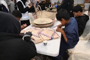 نظّم مكتب وزارة البيئة والمياه والزراعة بمحافظة النعيرية ورشة عمل بعنوان “فن التزيين بمنتجات النخيل”، وذلك ضمن فعاليات الورش التدريبية المصاحبة للقرية الزراعية في مهرجان ربيع النعيرية 2026. وقدّمت الورشة الفنانة التشكيلية معصومة صالح آل حمدان، متطرقة إلى التعريف بفنون التزيين اليدوي باستخدام خامات النخيل ومشتقاته، وإبراز قيمتها الجمالية والتراثية.