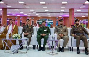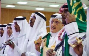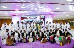 ثم شارك المحافظ في العرضة السعودية ، التي قدمتها دار فنون عنيزة والتي تغنت كلماتها بالوطن والولاء لقادته تحت راية التوحيد.