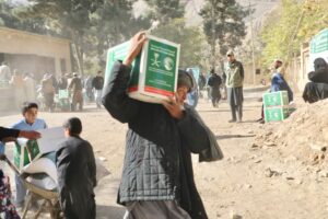 وزّع مركز الملك سلمان للإغاثة والأعمال الإنسانية أمس الأول (490) سلة غذائية و (490) كرتون تمر في مديرية البرز بولاية بلخ في أفغانستان، استفادت منها (490) أسرة، ضمن مشروع الاستجابة الطارئة لمساعدة متضرري الزلزال في شمال أفغانستان.