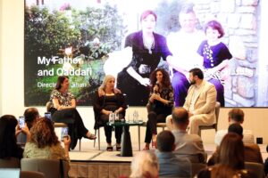 في فيلم “بابا والقذافي” حضرت المخرجة جيهان، أفراد عائلتها الذين ظهروا معها في العمل، والدتها بهاء، وشقيقها رشيد، وابنة شقيقها دانيا.