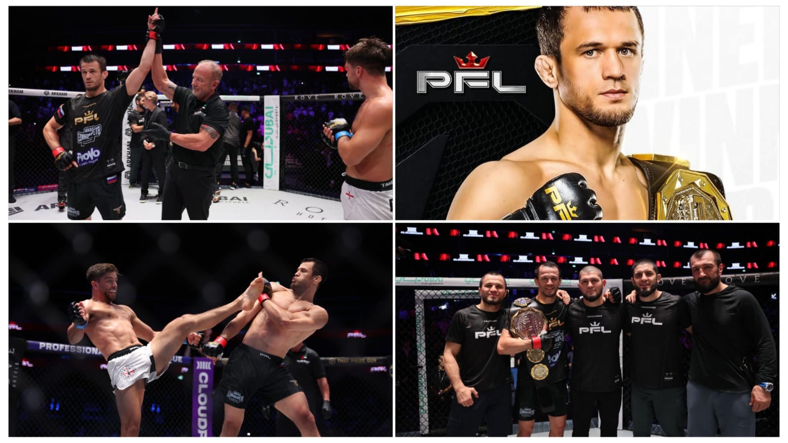 توّج المقاتل الروسي عثمان نورمحمدوف بلقب الوزن الخفيف لرابطة المقاتلين المحترفين، بعد فوزه على البريطاني ألفي ديفيس بالإخضاع في الجولة الثالثة، خلال النزال الرئيسي لبطولة رابطة المقاتلين المحترفين التي استضافتها دبي مساء أمس في كوكاكولا أرينا.