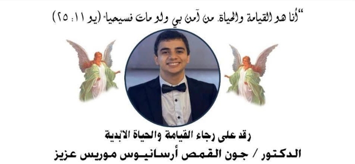 رحم الله نفس الدكتور جون القمص أرسانيوس موريس عزيز، وأعطِهِ يا رب مكانًا هادئًا في حضنك الإلهي، وليُعزِّ الروح القدس كل القلوب المتألمة.